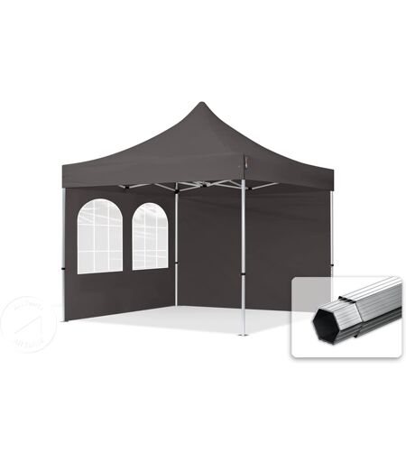 TOOLPORT 3x3m PES 800 Pop Up Gazebo PROFESSIONAL Aluminium 40 mm, incl. 2 side panels with Windows, dark grey - (600168)