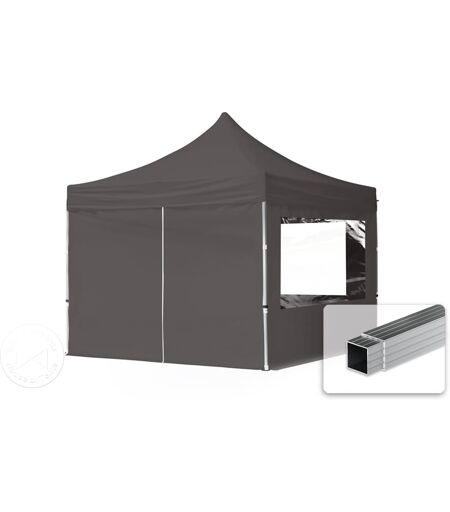 TOOLPORT 3x3m PES 700 Pop up gazebo ECONOMY Aluminium 32 mm, incl. 4 side panels with Panorama Windows, dark grey - (59006)