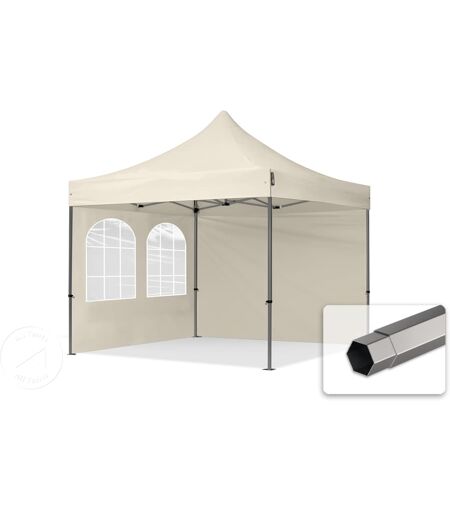 TOOLPORT 3x3m PES 750 Pop Up Gazebo PREMIUM Steel 40 mm, incl. 2 side panels with Windows, cream - (600012)