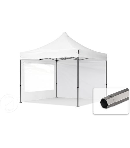 TOOLPORT 3x3m PES 750 Pop up gazebo PREMIUM Steel 40 mm, incl. 2 side panels with Panorama Windows, white - (600036)