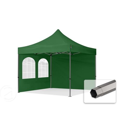 TOOLPORT 3x3m PES 750 Pop Up Gazebo PREMIUM Steel 40 mm, incl. 2 side panels with Windows, dark green - (600017)
