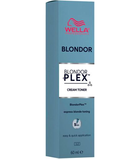 The BlondorPlex™ Cream Toners with PLEX technology for fast blonde toning results in just 5 minutes. Neutralizes unwanted warm tones and gold reflections. Ideal for illuminage/balayage services. Application: Apply after a Blondor brightening service. Express toning to neutralize warm gold reflections and to achieve blended blonde results. MIXING RECOMMENDATION: EXPRESS TONING: Mix 1:2 with 1.9% Welloxon Perfect. Fast & reliable toning for blended blonde results. EXPRESS TONING and as BASE BREAKER: Mix 1:2 with 4% Welloxon Perfect. Perfect to gently lighten natural colored roots while toning lengths and tips. Evens out color boundaries - for premium blonde results. Achieves reliable color balance and nuance in just 5 minutes.Glossy, healthy-looking blonde.Low ammonia content for gentle lightening to counteract gold reflections /86 Ultra Cool Booster can be used to neutralize gold/orange reflections more intensively. Add 1-5 g Ultra Cool Booster to 30 g selected toner color and mix 1 : 2 with developer. Caution: It is too intense to use alone. ...