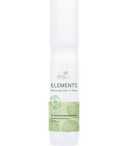 This relaxing and detangling spray protects hair from daily styling damage (combing or heat tools) and breakage, while moisturizing hair and taming static or frizz. Application: Spray onto damp hair. Do not rinse. ELEMENTS Elements is the gentlest hair care line from Wella Professionals for a feeling of healthy hair and scalp. Feel the gentle difference with our nourishing and high performance formulas with up to 99% ingredients of natural origin*, free from ingredients of animal origin and formulated without silicones and sulfates. Experience the care products that are not only gentle on the hair and scalp and dermatologically tested, but also come in responsible packaging made from up to 100% recycled plastic bottles and tubes**. *91% to 99% ingredients of natural origin, depending on the product. **50 to 100% recycled plastic depending on the product, excluding jars. ...
