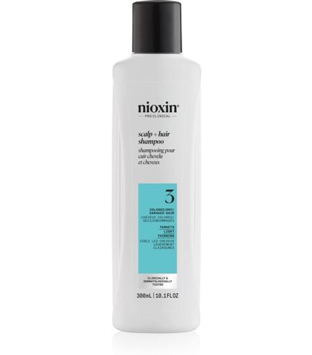 Nioxin System 3 Scalp + Hair Shampoo, 300 ml, Shampoos for Women, The Nioxin System 3 shampoo cleans the scalp effectively, washes hair thoroughly, and restores its natural beauty. Characteristics: soothes the scalp prolongs hair colour strengthens the hair fibre prevents premature hair loss combats itching and a dry scalp How to use: Apply an appropriate amount of shampoo to wet hair. Work up a lather and rinse thoroughly. For best results, follow up with other products from the same range. ...