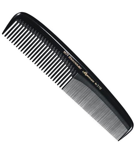 7½", medium-strong model, particularly handy for all work in the salon and for daily use. The original Sawmann working combs - made of natural rubber and high-quality hard rubber mixture - are absolutely hair and scalp friendly. They are hand-finished on all sides, highly polished and glide gently and easily through the hair. They have technically high-quality sawn and finely ground teeth, rounded, burr-free tooth tips and flanks. The non-porous surface guarantees hygiene, is resistant to all hair treatment and care products and is heat-resistant. The combs are shapely and elastic. They have a constantly consistent quality! ...