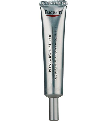 HYALURON-FILLER eye care is an anti-age eye cream specially formulated to combat wrinkles and crow's feet around the eyes. The contained combination of long-chain and short-chain hyaluronic acid acts on both existing and newly forming wrinkles. Saponin as well as SPF 15 and UVA protection soften the signs of premature aging and deepening wrinkles in the eye area. Skin looks smoother and more youthful. How to use: dab a pea-sized amount under and around the eyes. Massage gently with fingertips, avoiding eye contact. The structure and appearance of the skin changes over time, usually starting with fine lines and wrinkles. Later, the skin begins to sag, loses volume and facial contours become increasingly blurred. With advanced skin aging, the number and depth of wrinkles increases, while elasticity, firmness and radiance decrease. Eucerin, the expert for hyaluron in pharmacies, offers more than just hyaluron: HYALURONplus. HYALURONplus combines the benefits of hyaluronic acid with other effective ingredients to provide moisture and wrinkle replenishment, plus the highly effective plus for every individual skin need. For younger-looking and radiantly beautiful skin - from the very first wrinkle. The ranges include day and night care products for different skin types, as well as serums (including an innovative Vitamin C Booster, Night Peel & Serum, Face Oil, Eye Care and CC Creams). Clinical and dermatological studies confirmed the very good skin compatibility and high skin care efficacy of all products. ...