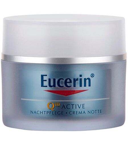 Eucerin Q10 ACTIVE Night Care is a rich anti-wrinkle care for sensitive skin. The formula contains the skin's own highly effective coenzyme Q10. Without parabens or artificial colorants. Application: When using for the first time, it is recommended to first test individual skin tolerance on the inside of your forearm for 24 hours before applying to the face. Apply in the evening to thoroughly cleansed skin. Apply to face, neck and décolleté. Gently massage in the care with upward movements. The Eucerin Q10 Active care series for sensitive skin counteracts premature skin aging. With increasing age, the natural regenerative capacity of the skin cells and the body's own production of coenzyme Q10 diminish. The skin lacks energy, cell-damaging free radicals increase, and the skin loses elasticity and firmness. All care products in the Eucerin Q10 ACTIVE series contain highly effective, skin-own coenzyme Q10. The formulas help stimulate energy production in skin cells to reduce the depth of fine lines and wrinkles. The properties of powerful antioxidants protect the skin from further damage caused by free radicals. The entire series contains no artificial colors or fragrances and is specially designed for sensitive skin. Excellent effectiveness and skin compatibility for sensitive facial skin. Without parabens and artificial colors, for good skin compatibility. ...