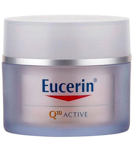 Eucerin Q10 ACTIVE Day Care is specially developed with the skin's own highly effective coenzyme Q10 to counteract signs of aging such as wrinkles, especially in sensitive skin. Its rich formula with vitamins C, E and H intensively cares for sensitive and dry skin. This care for dry, sensitive skin contains no fragrances, artificial colors or alcohol and is non-comedogenic. With regular use, wrinkle depth is visibly reduced, the skin is noticeably smoother and premature aging is prevented. In addition, the care is paraben-free. Application: When using for the first time, it is recommended to first test the individual skin compatibility on the inside of your forearm for 24 hours. Only then should it be applied to the face. Apply daily in the morning to well cleansed face, neck and décolleté. Gently massage into the skin. Then gently distribute Eucerin Q10 ACTIVE Eye Care to the eye area and tap it in lightly with your ring finger. Wait five to ten minutes before applying makeup. Before using for the first time, please read the instruction leaflet first. Avoid eye contact. The Eucerin Q10 Active care series for sensitive skin counteracts premature skin aging. With increasing age, the natural regenerative capacity of the skin cells and the body's own production of coenzyme Q10 diminish. The skin lacks energy, cell-damaging free radicals increase, and the skin loses elasticity and firmness. All care products in the Eucerin Q10 ACTIVE series contain highly effective, skin-own coenzyme Q10. The formulas help stimulate energy production in skin cells to reduce the depth of fine lines and wrinkles. The properties of powerful antioxidants protect the skin from further damage caused by free radicals. The entire series contains no artificial colors or fragrances and is specially designed for sensitive skin. Excellent effectiveness and skin compatibility for sensitive facial skin. Without parabens and artificial colors, for good skin compatibility. ...