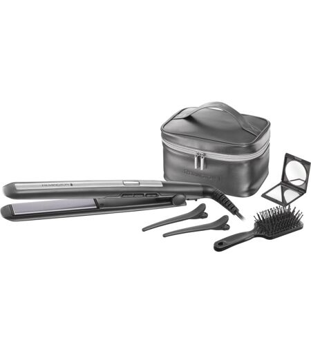 Remington Pro-Ceramic Titanium S5506GP, , Cosmetic sets for Women, Do you want to create perfectly polished hairstyles and the results you can achieve with smoothing creams, gels and other styling products are just not good enough? The hair straightener from RemingtonPro-Ceramic TitaniumS5506GP will meet your needs and help you achieve the look you desire. It perfectly smoothes the hair so that it is always beautifully groomed, supple and beautifully shiny. In addition to perfectly straightening your hair, it also allows you to create elegant waves in no time. The set contains: (S5505) Hair Straightener 1 pc Bag Hair Brush Mirror Hair Pins 2 pc Characteristics: smooths hair thoroughly does not harm or dry hair ceramic plates heats up quickly option to regulate temperature LED display floating plates shuts off automatically after a period of inactivity swivel cord How to use: Follow the instructions for use included. ...