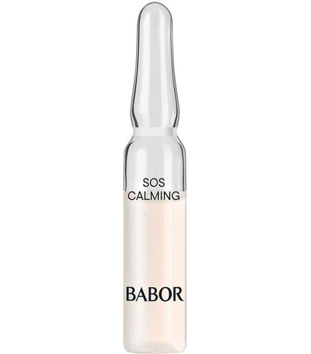 The SOS Calming active ingredients provide quick relief from redness and feelings of tightness. A fungal extract reduces skin sensitivity and soothes stressed skin. Moisturizing aloe vera refreshes and relaxes, even after sunbathing. Tiger grass extracts support regeneration and strengthen the skin barrier. Result: soothed, relaxed, balanced skin feeling. Application. After cleansing with BABOR CLEANSING products. Shake ampoule and cover the ampoule neck with a cosmetic tissue or the enclosed ampoule opener. Hold the ampoule by the ampoule neck or opener and break it open with a jerky movement at the lower, colored ring. Pour concentrate into palm of hand, then spread over face, neck and décolleté. Gently pat into the skin. Then apply care cream with sunscreen. ...