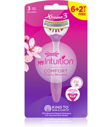 Wilkinson Sword Xtreme 3 Comfort Cherry Blossom, 8 pc, Razors for Women, Do you want to achieve a smoothly shaved face or parts of? With the Wilkinson SwordXtreme 3Comfort Cherry Blossomshaver this is the easiest way to do this - easily, quickly and painlessly. Its blades catch every hair you want to remove and shave it off with precision. Enjoy perfectly smooth skin just the way you want it. Characteristics: shaves quickly and easily adapts to the folds of the body the shaver has a moisture strip shaves armpits, legs and intimate areas easy handling the shaver is washable, making it very hygienic How to use: Use shaving foam or cream, then shave the skin using long, gentle strokes. ...