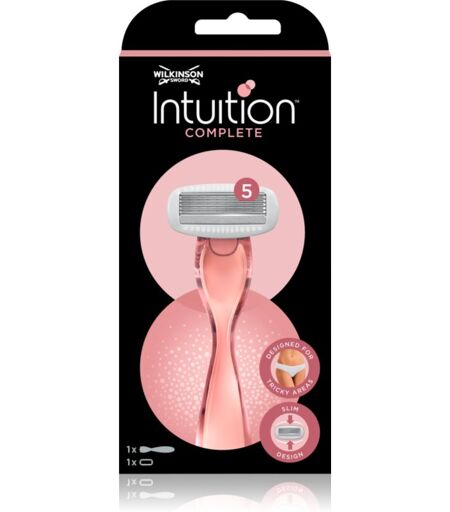 Wilkinson Sword Intuition Complete, 1 pc, Razors for Women, Do you want to achieve a smoothly shaved face or parts of? With the Wilkinson SwordIntuitionCompleteshaver this is the easiest way to do this - easily, quickly and painlessly. Its blades catch every hair you want to remove and shave it off with precision. Enjoy perfectly smooth skin just the way you want it. Characteristics: shaves quickly and easily adapts to the folds of the body interchangeable shaver heads the shaver is washable, making it very hygienic How to use: Use shaving foam or cream, then shave the skin using long, gentle strokes. Replace the shaving head with a new one as soon as the moisture strip wears out or the blades go blunt. ...