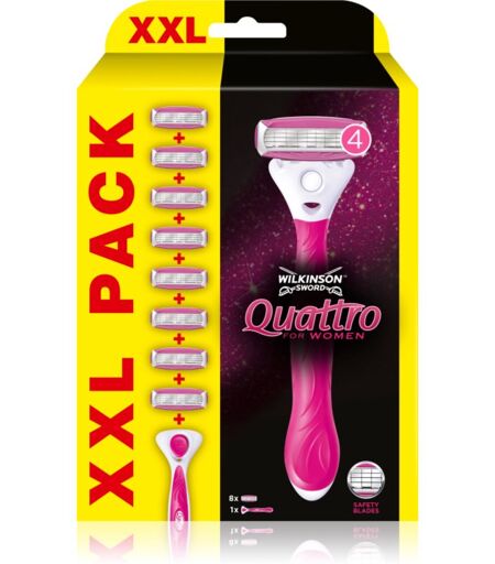 Wilkinson Sword Quattro for Women Aloe & Vit. E, , Cosmetic Sets for Women, Not getting the same precision results with your shaver as before? It’s time to change the blade. The Wilkinson Sword Quattro for Women Aloe & Vit. E replacement blades ensure the same smooth shave as with a new shaver. Characteristics: easily interchangeable shaving heads blades ensure a smooth shave adjusts flexibly to every curve How to use: Replace the shaving head with a new one as soon as it wears out or the blades go blunt. ...