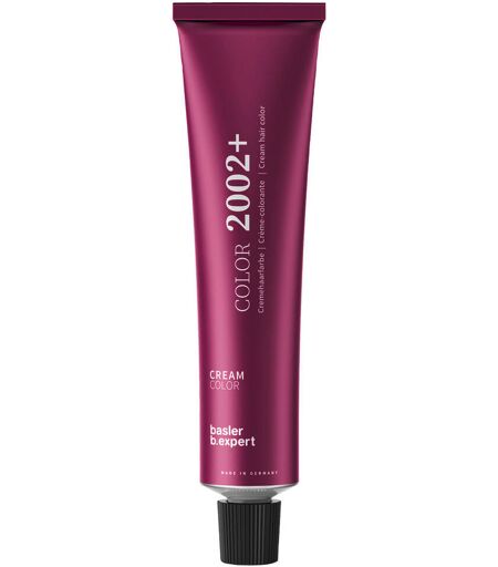 Basler COLOR 2002+ - Permanent Cream Hair Color - Cabinet Quality Color fascination of the extra class. Cream hair color with plant ceramides for the extra portion of care and protection. Valuable and rich active complexes guarantee brilliant and long-lasting color results. During coloring, the ceramides support the build-up and strengthening of the hair's cuticle layer and protect the hair from dehydration and harmful environmental influences. Content 60 ml. 100% coverage of natural tonesLightening up to 3 tones possibleProAge shades for more mature hairAnti-Gray with extra care5+technology for red toneswith plant ceramides Shades with Pro-Age intensive complex Color 2002+ intensive shades are natural shades that perfectly cover gray hair due to their intensive pigment content. The Pro-Age intensive care complex with wheat proteins and moisturizing glycerin nourishes the hair even during coloring. The hair shines with youthful radiance. Shades with 5+ technology Intensive red shades with the new 5+Technology. Long-lasting color pigments provide brilliant, clear and intense tones. Mode of action: The new red dye 5+ penetrates deep into the hair structure. The perfectly matched dye molecules form long-lasting color pigments that bond better with the hair structure. They therefore provide improved wash resistance and a particularly intense, bright red that lasts a long time. Mixing ratio Basler Color 2002+ Cream Oxide Basler Color 2002+ is used in normal coloration in a 1:1 ratio with Creme Oxyd 6%, 9% or 12% depending on the desired lightening. Color 2002+ Extra Blond is prepared in a ratio of 1:2 with Cremeoxyd, up to 3 tones lighter 9%, 4-5 tones lighter 12%. Already colored hair cannot be lightened with Basler Color 2002+. Mixing ratio Basler Color 2002+ PASTELL Basler Color 2002+ PASTELL is applied in a 1:1 ratio with cream oxide 9% or 12% depending on the desired lightening. Application time: 10 minutes. Optimal results are achieved on light blond, very light blond as well as on pre-blonded hair. Not recommended for tone medium blonde and darker. Shelf life: 6-8 hair washes. For first orders of 24 tubes or more of Color 2002+, you can request a color card free of charge! Delivery in new packaging possible. However, the product formula is unchanged. Mixed shades should only be added to a Color 2002+ cream hair color in grams. Mixed shades should not be dyed pure. Please always follow the instructions for use to achieve the optimum color result. ...