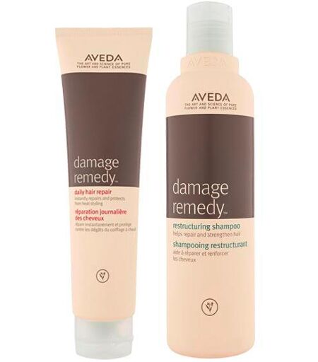 The AVEDA Damage Remedy Set includes: 1 x AVEDA Damage Remedy Daily Hair Repair, 100 ml1 x AVEDA Damage Remedy Restructuring Shampoo, 250 mlAVEDA's daily leave-in treatment does not wash out and instantly repairs damaged hair by up to 26%, protecting hair from heat damage during styling and making it easier to comb. Protein from certified organic quinoa penetrates the hair, instantly repairing it and rebuilding it from the inside out.Wheat protein protects hair from damage caused by heat during styling.Soybean oil makes hair easier to comb to prevent further damage and breakage.Controlled organic oils of bergamot, mandarin and ylang ylang lift the mood.*According to a clinical elasticity test after only 1 application of AVEDA Damage Remedy Daily Hair Repair. Application: Apply after using your favorite AVEDA shampoo and conditioner for healthy hair.For weekly use: use your hair shampoo, weekly treatment and then AVEDA Damage Remedy Daily Hair Repair.Rub a small amount of product in your hands, apply in damp hair and distribute with a comb. Do not rinse. Style hair as usual.Tip: Application of the product is the key to a good result. Use about a coin-sized amount for medium length hair. Rub the product into your hands first, then apply to damp hair.For better results, focus on the damaged areas and distribute the product evenly throughout the hair.Do not rinse, because AVEDA Damage Remedy Daily Hair Repair is a care that remains in the hair. This product gives your hair a healthy foundation for subsequent styling and finishing with your favorite AVEDA products.Restructuring Shampoo: AVEDA's gentle daily shampoo repairs severely damaged and stressed hair with quinoa protein, while coconut and babassu nut oils intensively nourish and revitalize hair. The shampoo is part of the 4-step AVEDA Damage Remedy system care.For hair that is heavily stressed by chemical treatment, heat effects during styling and harmful environmental influences.Enriched with babassu nut and coconut oil, the formulation gently cleanses and conditions structurally damaged hair.With quinoa protein that strengthens and repairs hair from the inside out.Application: Massage AVEDA Shampoo into wet hair, lather and then rinse. Build AVEDA Damage Remedy Restructuring Shampoo into your daily or weekly hair care routine. Daily: Follow with AVEDA Damage Remedy Restructuring Conditioner and AVEDA Damage Remedy Daily Hair Repair. Weekly: Then use AVEDA Damage Remedy Intensive Restructuring Treatment and AVEDA Damage Remedy Daily Hair Repair, for repairing intensive care at home. ...