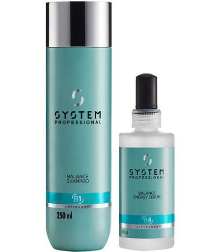 Balance Designed to soothe and nourish scalp. System Professional EnergyCode Balance B1 Shampoo, 250 ml:Gentle care for the scalp with a skin-friendly pH value. A system of gentle surfactants and soothing ingredients moisturizes the hair and scalp without further drying. Application: Work evenly into damp hair. Apply the Shampoo Relax hair wash. Rinse carefully. System Professional EnergyCode Balance B4 Energy Serum, 100 ml:Strengthens and strengthens the hair. When used three times a week, the clinically proven and patented formula strengthens the anchoring of the hair and strengthens thin hair. The special Energizing Complex with caffeine, biotin, lauric acid and vitamins increases the supply of nutrients to the hair and makes thin hair stronger. With EnergyCode™ Complex for responsive hair and scalp full of energy. Application: Wash the hair. Apply 2 to 3 pipettes section by section directly on the scalp and massage it immediately into the hair and scalp with your thumb. Once you wear it evenly applied, invigorate the scalp by applying the Energy Massage. This strengthens blood circulation and activates the ingredients, allowing them to work more effectively. Do not rinse. Home use: use 3 times a week, daily for acute hair loss. For optimal results, use SP Balance Shampoo to prepare the scalp. ...