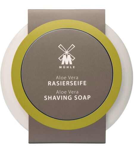 Aloe Vera - gentle and nourishing - in decorative porcelain bowl. Since the 18th century, shaving soaps have established themselves as the classics among wet shaving care products. The firm body of the soap dispenses a fine-pored and dense shaving foam when whipped with a brush, which is then applied and gently massaged in. All soaps from MÜHLE are developed according to fine recipes and optimally prepare the skin and beard hair for a particularly gentle, close shave. A soothing pleasure! Particularly suitable for sensitive skin, but also for all other skin types. The actual substance is obtained from the pith of cultivated aloe plants of the Mediterranean region. Its special ingredients with very high moisture content soothe and nourish the facial skin during shaving. Aloe vera has been known as a cultivated and medicinal plant since ancient times. It has a regenerating and soothing effect. Invigorating, fresh fragrance composition with oak leaves and mint. ...