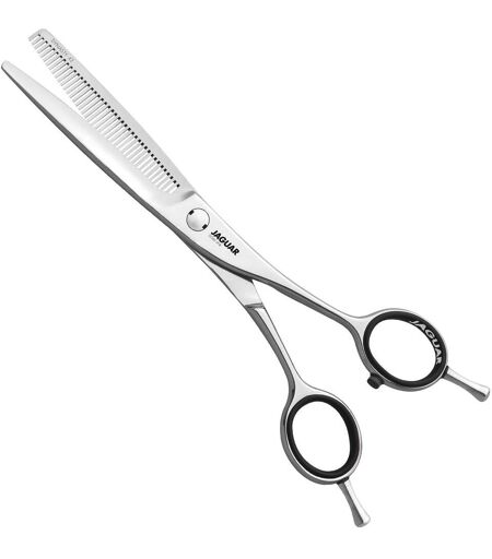 The JAGUAR DYNASTY 42 modeling scissors in size 6.0" provide a pleasantly gentle cutting feeling and a precise cut. Best of all: they are also suitable as hairdressing scissors for left-handers. As part of the GOLD LINE, it stands for the best quality and durability. The modeling scissors appeal to the real professional hairdresser with a demand for quality, as they are versatile and allow many hair cutting techniques. The DYNASTY 42 is particularly suitable for thinning hair. Blade and cutting edge The premium modeling scissors have 42 Effilier teeth with finest prismatic toothing. Added to this is the pointed cutting angle, which produces a precise cut. The hollow grinding creates a particularly soft cutting feel, which makes cutting easier in everyday hairdressing. Steel and surface Forged premium special steel is used for the GOLD LINE hairdressing scissors. The special ice-hardening process used to create a Friodur® blade makes the blade harder and the steel thus extremely resistant. So it stays sharp for a long time and you benefit from your professional modeling scissors for longer. They are hand-polished and the shiny surface gives the DYNASTY 42 a high-quality and timeless look. Ergonomics and gait of the scissors The DYNASTY 42 has a Classic handle shape that provides a traditional cutting feel, with the two handle rings symmetrically superimposed. The two short finger hooks make these modeling scissors also suitable for left-handers and the little finger can be comfortably placed on them. The premium blade shape and the flat screw system Smart Spin cause the scissors to move particularly smoothly. This additionally relieves the muscles of the working hand. Scope of delivery To use the DYNASTY 42 in the long term, regular care of the modeling scissors is recommended. Therefore, a care oil is included, because this way the cutting edges retain their precision. The care is also facilitated by the supplied care cloth. With the help of the adjusting key, you can readjust the screw if necessary and thus tailor your hairdressing scissors to your needs. In this way, the work is facilitated and the hand is ergonomically supported. Professional modeling scissors with prismatic teethAlso suitable as left-hand scissorsShiny polished surfaceQuality Made in GermanyScope of delivery: care oil, care cloth, adjusting key Features: Handle position: CassicSteel: Molybdenum steelWeight: 42 gCutting edge / Blade: Effiliation teethScrew system: Smart SpinLeft / right hand: RightProduct finish: polished / shinyScissors size: 6.0"Color: SilverToothing: teeth with prismSpecial feature (scissors): removable finger hook, 2 short finger hooks, also suitable for left-handers ...