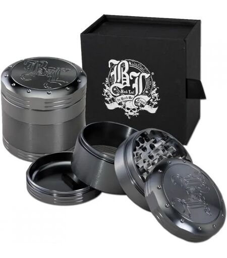 This popular shredder owes its name to the deep BL engraving in the lid. But of course, the four-piece grinder made of high-quality aluminium offers much more than just good looks: Efficient crushing of herbs and peace robust and durable quality pleasant feel rounded chamber with jaws in a great gift box with magnetic closure The diamond-cut teeth reliably crush herbs as well as hard bits, but they should definitely be cold. The pollen chamber is also spacious and has rounded corners. Thus, no valuable dust can settle in the corners and on the edges. A scraper for scraping off the pollen is included. There is no abrasion with this quality aluminium, but the nylon ring between the metal parts ensures that the herb grinder turns easily and effortlessly. The grinder is held together by a strong magnet. The grooved design gives the sturdy herb grinder a very pleasant feel. Short Description: Material - Aluminum, Hard anodized teeth, Stainless steel sieve Colour - Grey Motif - BL logo, engraved Setting - 4 piece Diameter - 62/58 mm Height - 58 mm System - Diamond cut teeth Weight: 298 grams Accessories - Scraper Info - Delivered in a gift box Manufacturer: Near Dark GmbH Bonner Str. 11a 53773 Hennef, Germany In compliance with applicable regulations, when selling smoking aids and electronic cigarettes online, the seller is required to verify that the purchaser is at least 18 years of age. ...