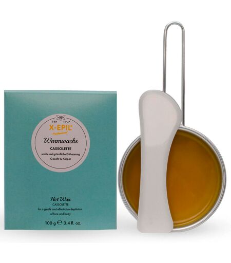 The Cassolette can be easily heated in the aluminum bowl on the stove top. Then the viscous wax can be applied to the areas of skin to be depilated. A long-lasting hair removal, ideally suited for legs and ladies beard. Especially for sensitive skin areas, prevents skin irritation, with aloe vera. Content 100 g wax. ...