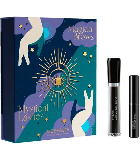 The Mystical Eyes Bundle from M2 Beauté! This set contains: 1 x Eyelash Activating Serum1 x Eyebrow Renewing Serum The EYELASH ACTIVATING SERUM is an innovative active serum for significantly longer and thicker eyelashes. In combination with nourishing components, the highly efficient active ingredient complex strengthens and stimulates the active and inactive hair roots of the eyelashes and demonstrably promotes their natural growth. The EYEBROW RENEWING SERUM from M2 BEAUTÉ is based on innovative and highly potent active ingredient complexes that are individually tailored to the eyebrow area. The effective, non-greasy active serum significantly thickens and strengthens the eyebrows. In combination with nourishing components such as biotin and hyaluronic acid, the highly efficient active ingredient complex with Black Sea Rod Oil stimulates the active and inactive hair roots of the brows and has been proven to promote their natural growth. Application: EYELASH ACTIVATING SERUM is applied sparingly to dry, oil-free skin at the base of the upper lashes once a day after cleansing in the evening. The fine liner brush enables precise application close to the roots. After a short application time, the usual care products can be used. The EYEBROW RENEWING SERUM is applied once a day to the dry, oil-free brow area against the direction of growth after cleansing in the evening. The dense liner brush enables easy and targeted application of the serum over the entire eyebrow or specifically to the areas that need to be optimized. It also ensures precise application close to the roots. After a short application time, the usual care products can be used. ...