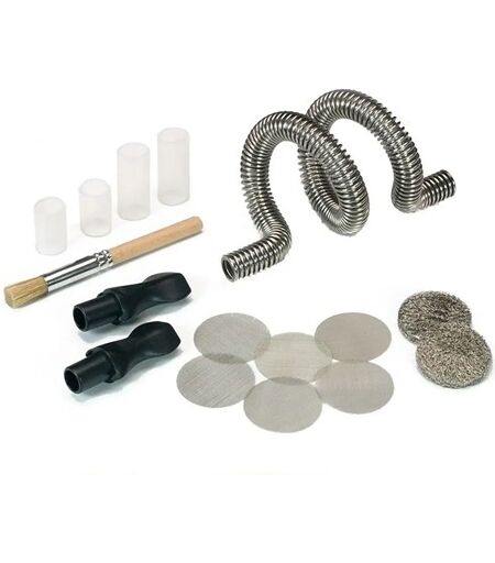 Set Includes: - 2 pcs. Mouthpiece - 1 pc. Cooling Coil - 2 pcs. Tubing Section, long - 2 pcs. Tubing Section, short - 1 pc. Normal Screen Set (approx. Ø 30 mm) - 2 pcs. Liquid Pad (approx. Ø 28 x 4 mm) - 1 pc. Cleaning Brush Compactible only with Plenty vaporizer! ...