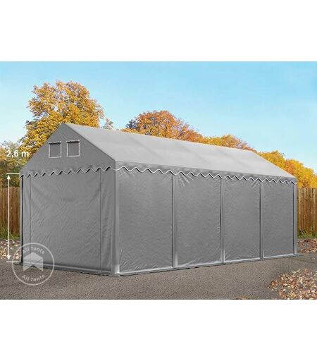 TOOLPORT 4x8m 2.6m Sides Storage Tent / Shelter w. ground frame, PVC 800, grey without statics package - (7633BL)