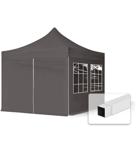 TOOLPORT 3x3m PES 700 Pop up gazebo ECONOMY Steel 30 mm, incl. 4 side panels with Windows, dark grey - (582635)