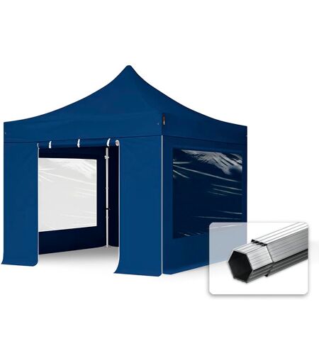 TOOLPORT 3x3m PES 800 Pop up gazebo PROFESSIONAL Aluminium 40 mm, incl. 4 side panels with Panorama Windows, blue - (600156)