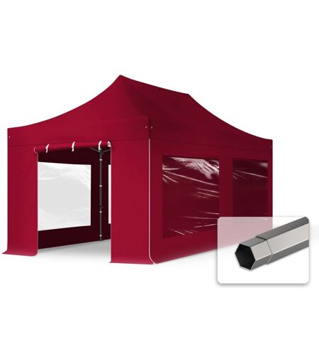 TOOLPORT 3x6m PES 750 Pop Up Gazebo PREMIUM Steel 40 mm, incl. 4 side panels with Panorama Windows, red - (600081)