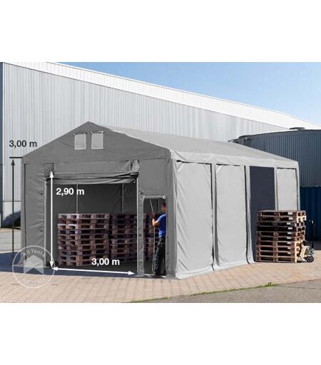 TOOLPORT 5x8m 3.0m Sides Storage Tent / Shelter w. ground frame and pull-up gate, PVC 850, grey without statics package - (79802)
