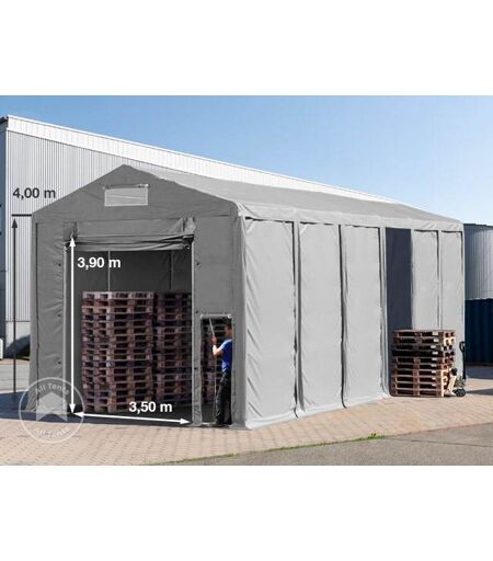 TOOLPORT 6x12m 4.0m Sides Storage Tent / Shelter w. ground frame and pull-up gate, PVC 850, grey without statics package - (79827)