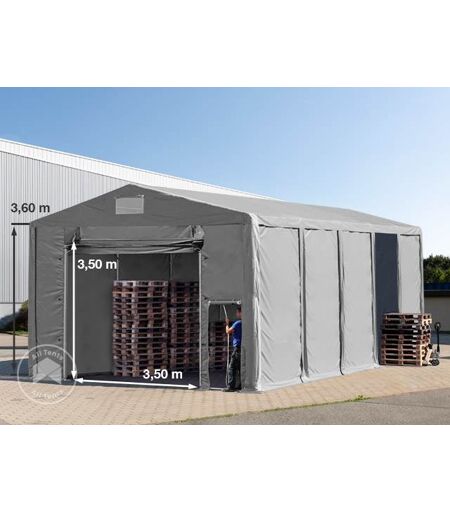 TOOLPORT 8x10m 3.6m Sides Storage Tent / Shelter w. ground frame and pull-up gate, PVC 850, grey without statics package - (79836)