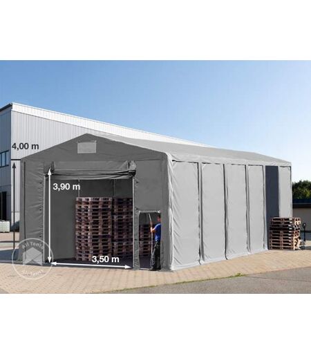 TOOLPORT 8x12m 4.0m Sides Storage Tent / Shelter w. ground frame and pull-up gate, PVC 850, grey without statics package - (79855)