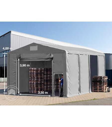 TOOLPORT 8x8m 4.0m Sides Storage Tent / Shelter w. ground frame and pull-up gate, PVC 850, grey without statics package - (79852)