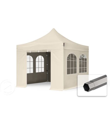 TOOLPORT 3x3m PES 750 Pop Up Gazebo PREMIUM Steel 40 mm, incl. 4 side panels with Windows, cream - (600014)