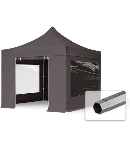 TOOLPORT 3x3m PES 750 Pop Up Gazebo PREMIUM Steel 40 mm, incl. 4 side panels with Panorama Windows, dark grey - (600025)