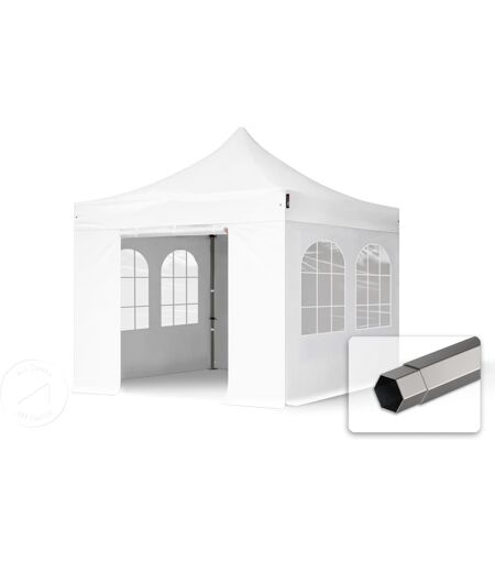 TOOLPORT 3x3m PES 750 Pop Up Gazebo PREMIUM Steel 40 mm, incl. 4 side panels with Windows, white - (600038)
