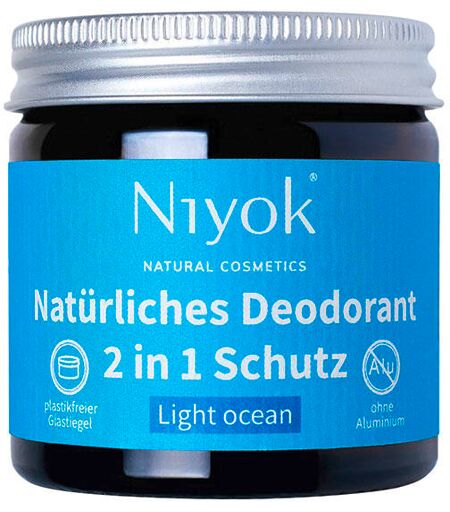 This deodorant cream without aluminum from Niyok has an antiperspirant effect based on sage and anti-odor due to a complex of four effective ingredients. It is very economical and can be easily distributed without clumping. The deodorant cream is also 100% natural, comes in a plastic-free glass jar and leaves no traces on clothing. Just a pea-sized portion per armpit is enough to keep you fresh all day. Light ocean with its refreshing citrus notes stands for lightness paired with a fresh sea breeze. Application: A fingertip under the armpits is enough for a whole day of freshness. The deodorant cream is quickly absorbed and leaves no traces on clothing. Niyok stands for vegan natural cosmetics in minimalist style. No aluminum. No alcohol. No microplastic. No palm oil. Made in Germany. ...