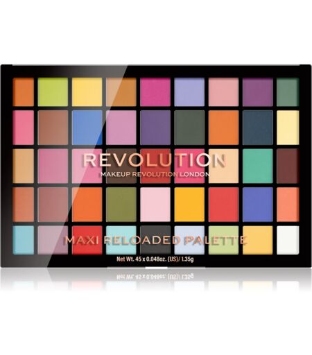 Makeup Revolution Maxi Reloaded Palette, 45x1,35 g, Makeup Palettes for Women, Do you want to enhance your look, contour your eyes and accentuate their beauty? The Makeup Revolution Maxi Reloaded Palette eye makeup palette opens up possibilities for creating a wide variety of eye looks. It contains not one but several pressed eyeshadows, which complement each other ideally and can therefore be combined perfectly to create various looks – from subtle daytime to bold evening makeup. Each shade provides even pigment coverage and is easy to apply, blend or mix with other shadows without creating unwanted harsh transitions. Characteristics: long-lasting shades can be combined easily shimmering and matte effect for day and evening makeup How to use: Apply shadows to the eyelids with a brush, foam applicator or fingertips. ...