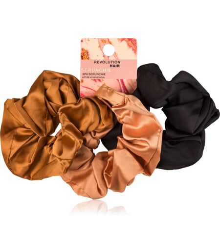 Revolution Haircare Satin Scrunchie, 3 pc, Hair accessories for Women, Your hair will be kept in a ponytail, braid or another similar hairstyle by the Revolution Haircare Satin Scrunchie hair band. It grips the hair gently but firmly enough to prevent unwanted loosening. In just a minute it will help you complete your hairstyle and bring all of the rebellious strands under control. It will ensure that your hair no longer falls into your eyes or otherwise gets in the way when it's least convenient - for example, when you are working or playing sports. Put your faith in a hair band which will ensure maximum comfort and complete effectiveness during any activity. Characteristics: does not leave a mark on hair creates a simple and trendy hairstyle stays in place guaranteed to be gentle on hair How to use: Create your hairstyle as desired. ...