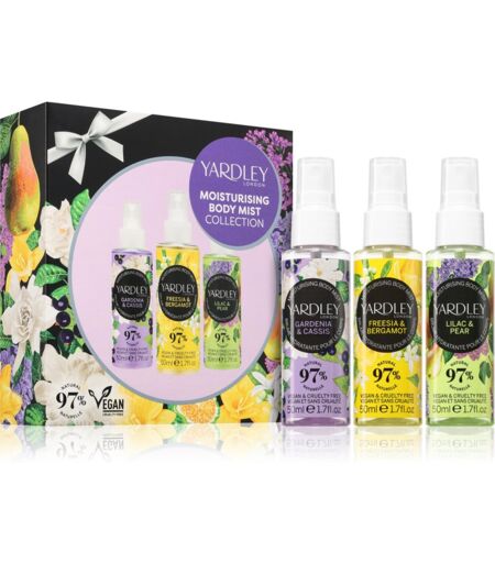 Yardley Body Mist Collestion, 3x50 ml, Body sprays for Women, Treat yourself to some refreshment – and not just on a hot summer day. Yardley Body Mist Collestion body spray will surround you with a citrussy aroma to give you new energy and invigorate your senses. Characteristics: a selection of sensual floral fragrances citrus fragrance floral fragrance fruity fragrance great for women with a romantic soul fresh fragrance, ideal for hot weather The set contains: Yardley Gardenia and Cassis Body Spray 50 ml Yardley Freesia and Bergamot Body Spray 50 ml Yardley Lilac and Pear Body Spray 50 ml ...