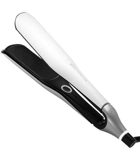 The ghd chronos max styler with 85% larger plates1 is ideal for long, thick and curly hair. Achieve 3x faster2 high-definition styling - for results that last 24 hours.3 HD Motion-Responsive™ technology is equipped with a 2x more responsive4 algorithm that identifies your styling movements and responds smartly with the right amount of heat and power to the plates to maintain the optimum styling temperature of 185°C for an unprecedented level of precision. With perfect heat resistance, the straightener achieves HD results with 90% more shine,5 2.5x less frizz6 - all without extreme heat damage.7 ghd chronos max is the perfect hair styler to make the glass hair trend a reality with 90% more shine5. ghd chronos max is more than just a straightener: the ergonomic shape of the barrel and redesigned fork joint make creating versatile styles even quicker and easier - without extreme heat damage.7 Achieve up to 3x smoother hair in one stroke8 or unleash your creativity and style soft waves. With ghd chronos max, even large sections of hair can be transformed in no time with just one stroke. The 85% larger1 plates are ultra-gloss coated and combined with the narrow, rounded edge, they ensure perfect styling from root to tip. The ghd chronos max with universal voltage allows you to straighten or curl your hair wherever you are. The automatic sleep mode switches the styler off after 10 minutes of inactivity for added safety. From now on, you don't have to worry about whether you've switched your straightener off. EU plugHD Motion-Responsive™ technologyUniversal voltage30 seconds heat-up time10 minutes sleep mode2.7 m long cable2 year manufacturer's warranty 4 steps to perfectly styled hair: 1. spray ghd bodyguard heat protect spray into your hair.2) Section the hair into individual sections.3a) Straight look: Place the styler at the root and glide evenly through the hair section to the ends.3b) Wavy/curly look: Place the styler at the roots and rotate 180°. Now glide through the hair section. Different positions and twists can be used to create versatile styles.4 Repeat the process until all your hair is styled. 1 compared to ghd gold.2 compared to ghd max.3 Consumer test, Nov'23. 82% of 112 consumers agreed that ghd chronos max provides 24hr lasting styling.4 Compared to ghd platinum+.5 Technical lab test on brunette hair compared to naturally dried hair.6 Technical lab test on frizzy hair compared to naturally dried hair.7 Extreme heat is any heat treatment that causes a fractional reduction in wet tensile strength per cycle of greater than 0.001, measured over at least 100 cycles on brown, Caucasian hair (a "strength reduction"). Extreme heat damage is a strength reduction of more than 0.005.8 Technical test in the laboratory on wavy hair, compared to naturally dried hair. Safety instructions: This appliance can be used by children aged from 8 years and above and persons with reduced physical, sensory or mental capabilities or lack of experience, sensory... ...