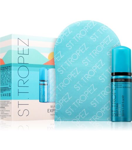 St.Tropez Express Mini Kit, 2 pc, Self-tanning Products for Women, Do you want to dazzle with beautifully tanned skin? But, at the same time, you do not want to wait for the weather to get better or for a holiday in a warmer climate? St.Tropez Express Mini Kit is a self-tan product that gives your face and body a perfect, even and natural-looking tan wherever you are, at any time of the year. It helps you achieve a gorgeous beach-like tan quickly and easily without exposing your skin to the sun. The set contains: St.Tropez Self Tan Express Fast Self Tanning Mousse 50 ml St.Tropez Luxe Velvet Applicator Mitt Applicator For Self-Tanning Cream double-ended 1 pc Characteristics: gives skin a hint of bronze hydrates and nourishes is absorbed quickly leaves no residue ensures an intensive tanned effect easily spread and absorbed streak-proof on clothing Ingredients: vegan product How to use: Apply an appropriate amount of the product to skin all over the body. Work in thoroughly and evenly. For best results use the application mitt. Shake before use. ...