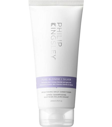 Pure Blonde/Silver Conditioner moisturizes and brightens blonde and gray hair by preventing and correcting brassiness and dullness. The daily use formula adds softness, shine and shimmer to hair without leaving traces of color residue. Application: After shampooing, gently work into the mid-lengths and ends of the hair. Rinse well and follow with the matching Philip Kingsley Scalp Toner. ...