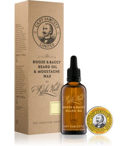Captain Fawcett Ricki Hall´s, , Beard kits for Men, The Captain Fawcett Ricki Hall´s cosmetic set contains everything you need for perfect beard care. The set contains: Moustache Wax 15 ml Beard Oil 50 ml Characteristics: long-lasting hydration for beard and skin does not leave residue in the beard or make it stick together has a pleasant fragrance smooths your moustache and helps shape it keeps the beard healthy and shiny How to use: Do not rinse. ...
