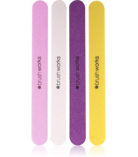 Brushworks Nail Files Coloured, 4 pc, Manicure and Nail Files for Women, Neat nails make an impression – show yourself in the best light without having to visit a professional salon. The Brushworks Nail Files Coloured nail file allows you to shape your nails in the comfort of your home and make minor adjustments to achieve a salon-like look. It’ll make your nails always look neat, well-groomed and free of any irregularities. Characteristics: shapes and shortens nails files accurately and symmetrically can be used for natural and artificial nails How to use: Place on the nail and file in gentle strokes going in one direction. After use, rinse with water. ...