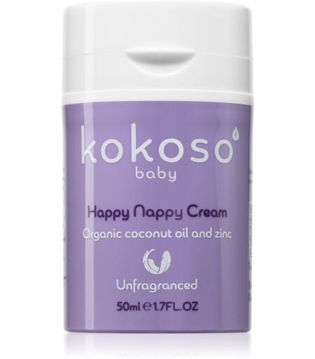 Kokoso Baby Happy Nappy Cream, 50 ml, For Nappy Rash For Kids, Kokoso Baby Happy Nappy Cream prevents sores from occurring and forms a protective layer on your child’s skin. Characteristics: forms a gentle, non-irritating protective film on the skin softens and moisturises skin protects the skin against external influences makes skin feel comfortable soothes and moisturises irritated skin Ingredients: contains a minimum of 99% ingredients of natural origin no perfume coconut oil – contains a large amount of antioxidants, helps prevent wrinkles and premature skin aging, intensively nourishes, softens and promotes hydration, regeneration and soothing of skin panthenol – has a hydrating and soothing effect, relieves irritation, redness, dryness and discomfort squalane - locks water in skin by forming a protective layer on its surface, hydrates, softens and smooths, helps regulate sebum production, thanks to its strong antioxidant effects it also contributes to a balanced skin tone zinc – keeps sebum in balance, soothes and relieves redness, has cleansing effects, helps fight acne, promotes pore minimization How to use: Apply as needed in a thin layer to washed and dried skin, ideally after nappy changing. ...