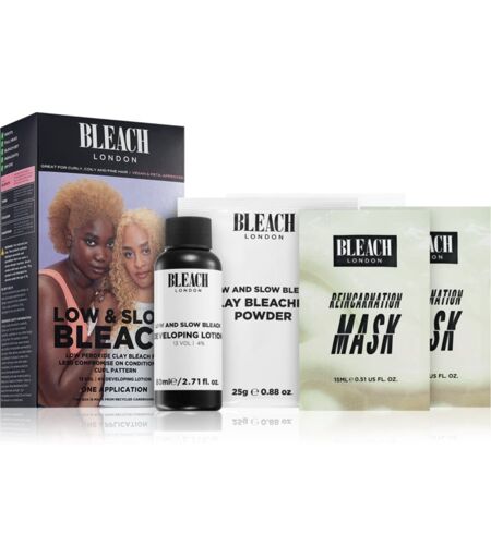 Bleach London Low And Slow, 1 pc, Hair Bleach for Women, Lightening your hair often requires a visit to a hair salon, but you no longer have to go anywhere. This product from Bleach LondonLow And Slow guarantees a professional result. It effectively removes dark pigment from your hair, so you can get the shade of your dreams quickly and easily. The set contains: Lightening Powder 2x25 g colour developer 80 ml Nourishing Mask for dry and damaged hair 2x15 ml Mitt 1 pc Characteristics: ensures even lightening washes out easily How to use: You must test for any negative reactions to the bleaching product before applying. Test on a small patch of skin and hair. Follow the instructions included. ...