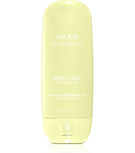 HAAN Toothpaste Apple a Day, 50 ml, Natural oral care unisex, HAAN Toothpaste Apple a Day toothpaste contains no fluoride and strengthens teeth naturally. It is especially suitable for sensitive teeth and gums. Characteristics: ensures the prevention of plaque, tartar and tooth decay guaranteed to be gentle on teeth and gums prevents the build-up of tartar leaves the mouth feeling clean and fresh Ingredients: does not contain fluoride natural extracts How to use: Clean the teeth thoroughly for at least two minutes. For further treatment of the teeth, use dental floss or an interdental brush. ...
